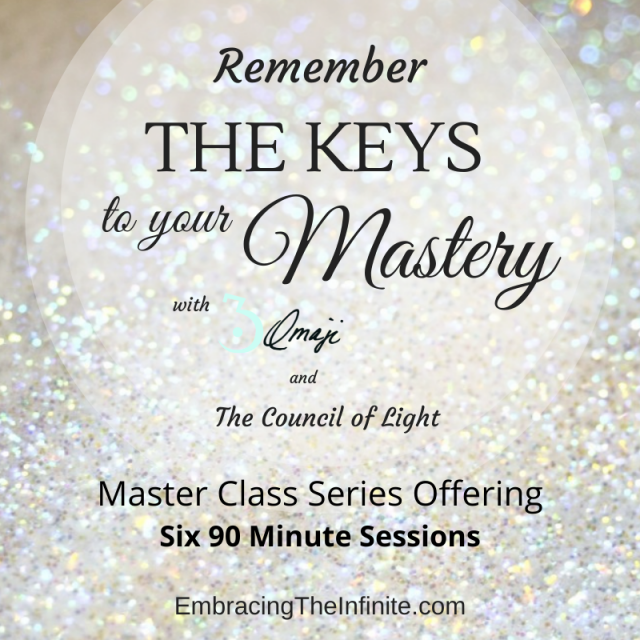 "This Master Class Offering is intended to Guide you Gently through the Process of Awakening your Dormant Capacities and Remembering the KEYS that you HOLD as A Being of Light. In the ‘retiring of hiding and holding back’ and in the EMBRACING of your LIGHT, Gifts, MASTERY and Innate Wisdom… The ACTIVATION into your ALLNESS can be Experienced and Expressed. It is our Honor To Support you in Remembering THE KEYS that you Hold and the MASTERY that you Have Attained. As YOU REMEMBER this, You Allow yourself to ACCESS and EXPRESS the GIFT of your Authentic True Self." ~ Omaji and The Council of Light