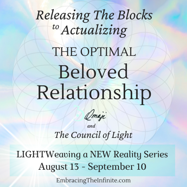 This Series of Transmissions with Omaji and The Council of Light provide Remembering, Energetic Upgrades, Downloads and Light Codes, Attunements and Activations to Support you in Healing/Releasing/Completing the OLD and Stepping into The VIBRATIONAL PROXIMITY for the ACTUALIZATION of a BELOVED PARTNER AND BELOVED RELATIONSHIP.