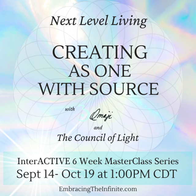 IN This 6 Week INTERACTIVE and EXPERIENTIAL MasterClass Series, Omaji and The Council of Light will share a Series of Transmissions, Teachings and Energetic Tools and Exercises that Support YOU to UPGRADE Your Ways of Being with Creating and Manifesting to REMEMBER and EMBODY The ONENESS WAYs of BEING in Relationship to CREATING.